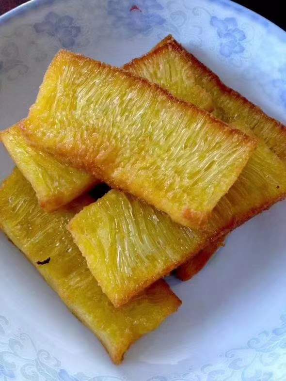 黄金糕,其实就是用木薯淀粉发酵而来。真正成品要有鱼翅般的蜂窝状,吃起来软绵韧糯并有淡淡的发酵酒香,当然印尼式的还有非常浓郁的辛香料味。吃的时候微波下。