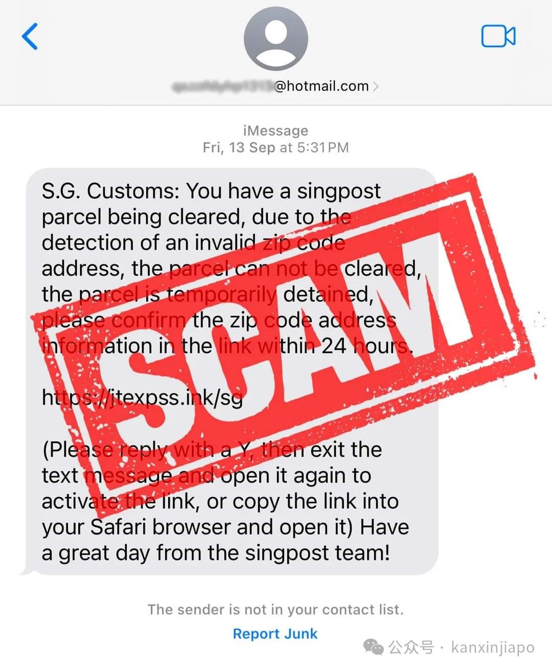 而本地所有的政府机构近期也统一以gov.sg的发送者身份向公众发送简讯。但这则声称来自关税局的简讯,却是由一个不明的可疑电邮地址发出的。因此种种迹象显示,这是个诈骗短信。