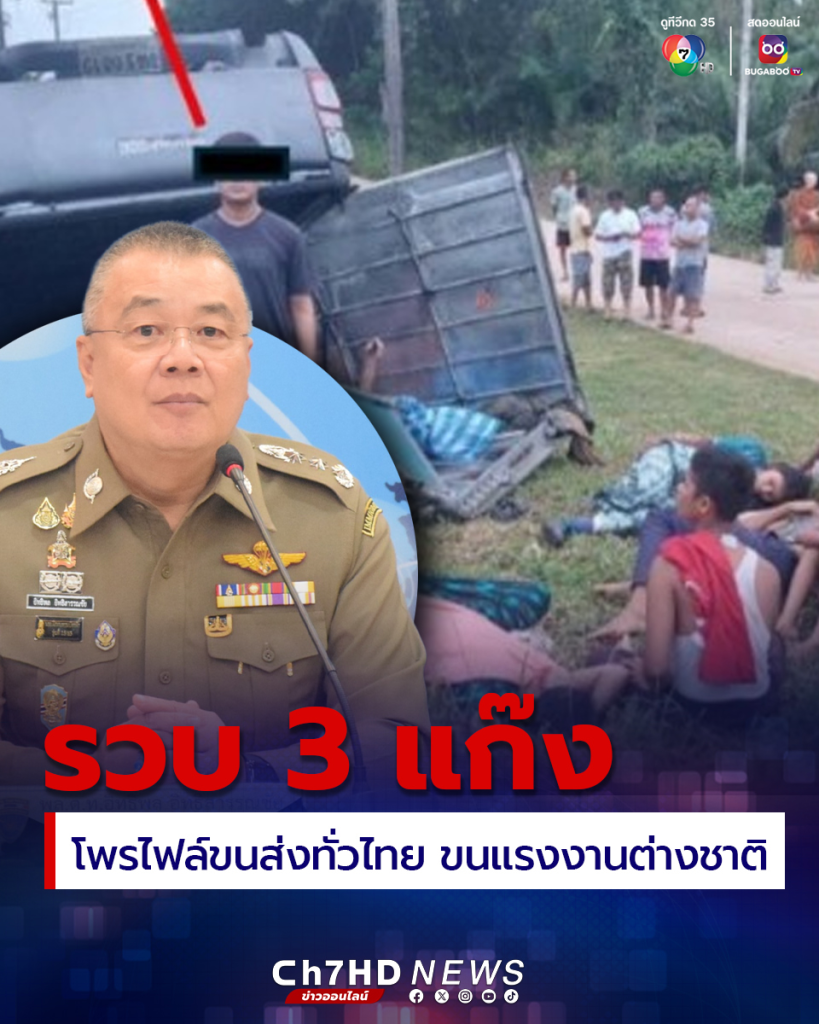 案件三:春蓬府移民局警方在一起车辆侧翻事故中逮捕36岁的犯罪嫌疑人哈外,其涉嫌与同伙阿努拉以1000泰铢/人的价格接受雇佣,将18名缅甸籍非法劳工从中部运往南部。据警方调查,其二人与团伙曾涉嫌4起走私非法劳工案,目前已逮捕嫌疑人12人,非法入境外籍劳工102人,并扣押6辆涉事汽车。