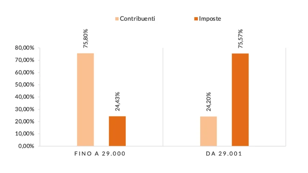 在59.030.133名常住公民中(注意居住概念与公民身份不同),有42.026.960人在2023年提交了纳税申报表(参考上一纳税年度)。到 订金 至少 1 欧元 个人所得税 只有 32.373.363 名居民,即 超过一半的意大利人:因此每个纳税人对应 1,405 名居民。但问题在于细节。总额高达 7.500 欧元的受试者中有 9.330.900 人,占总数的 22,20%,他们每年平均缴纳 20 欧元的 Irpef(如果与公民相比为 14 欧元)。有 7.500 名纳税人申报的每年总收入在 15.000 至 7.626.579 欧元之间:在这种情况下,扣除 IRP,每位纳税人每年平均支付的 Irpef 为 294 欧元(每位居民 209 欧元),相比之下,例如人均医疗保健支出约为2.221欧元。申报总收入在15.000至20.000欧元之间的纳税人有5,4万,平均每年缴纳税款为1.761欧元,每名居民减少至1.254欧元;其次是 20.001 万纳税人,从 29.000 欧元增至 9,5 欧元,平均纳税额为 3.612 欧元,与居民总数相比下降至 2.571 欧元:对于下一个括号,这一数额本身就足以 支付医疗费用,但在考虑具体捐款(包括援助)未涵盖的其他主要福利职能时,这仍然不够。其次是收入在 29.001 至 35 欧元之间的范围,其中有 3.754.371 名纳税人,相当于 5.273.306 名居民:这些纳税人占 8,93%,每年平均缴纳税款 6.138 欧元,每个居民缴纳 4.370 欧元,并支付共计12,17%的税收。将所有收入等级加总至 29 欧元,得出: 75,80%的意大利纳税人缴纳 只 该24,43% 整个 Irpef:这张照片更接近贫穷国家,而不是七国集团成员国,而且根据《社会保障行程》,在观察意大利人的消费和消费习惯时,这也显得不真实。很容易意识到,很少有纳税人缴纳适合其生活方式的税款,而有太多纳税人报告的收入过低。然而,根据大数定律,逃避在第二组中很普遍。