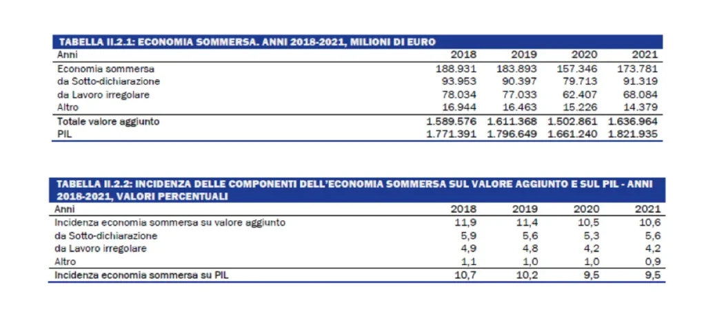 Il 采取不定期工作 企业和家庭的就业现在和将来都是意大利劳动力市场的结构特征。 2021年,全日制非正规就业单位为2万990万人,较2020年下降18,6%略有回升。非正规工作单位的增长(总体+2,5%)是由独立单位的业绩推动的,独立单位在 2021 年的增长率为 5,1%,而就业单位的增长率为 1,5%。然而,非正规工作单位的趋势明显比常规单位更受抑制,总体增长了 10,7%,这决定了进一步显着的增长。 违规率下降 并强化了2015年以来的下降趋势。如果我们分析中期,我们发现,与2018年相比,2020年非正规工作单位大约减少了654万个,其中从业人员减少了470万个,独立单位减少了183万个。四年来,违规率下降了 2,4 个百分点,从 15,1 年的 2018% 降至 12,7 年的 2021%。