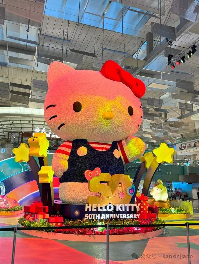 为了庆祝凯蒂猫50周年,樟宜机场在T3航站楼二楼出境大厅打造了“凯蒂猫佳节奇妙世界”。