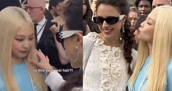 在社交网络服务(SNS)上上传的视频中,玛格丽特·库利与Jennie轻轻拥抱后,摸着Jennie的头发问,“这真的是你的头发吗?”Jennie回答“不”。接着玛格丽特·高利称“像真的一样”。